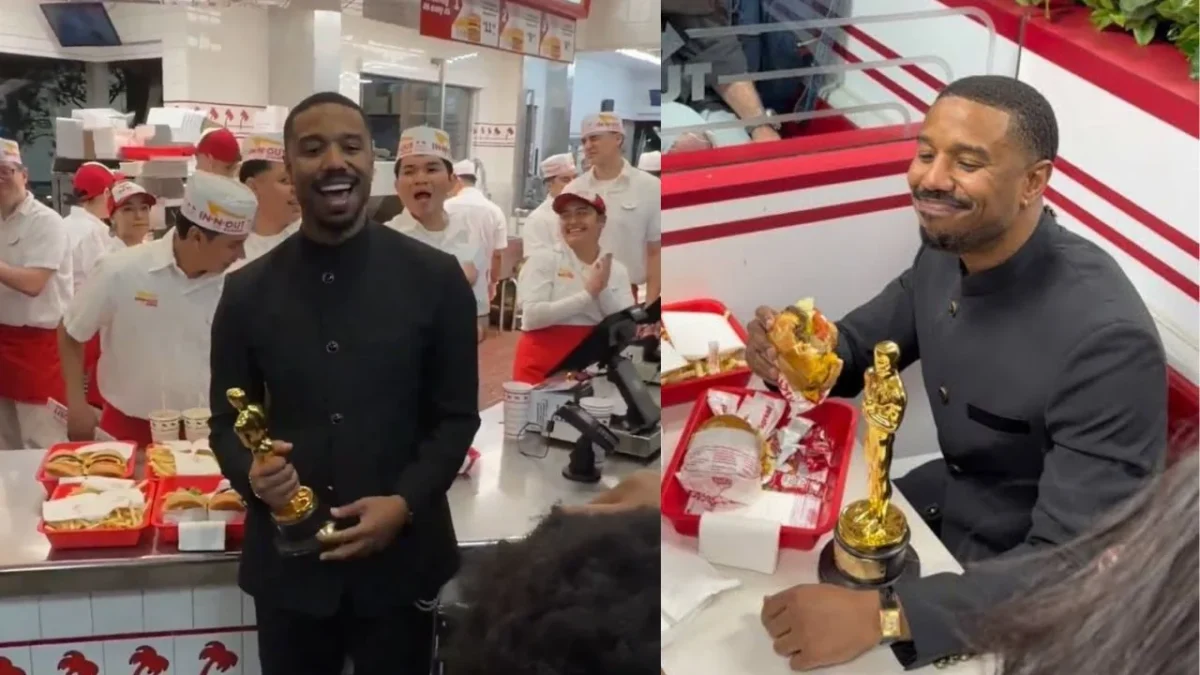Michael B. Jordan se convirtió en una de las imágenes más comentadas de la noche de los Oscar 2026 al celebrar su triunfo como Mejor Actor con una parada en In-N-Out Burger en West Hollywood, donde llegó acompañado de su equipo, guardaespaldas y su estatuilla en mano.